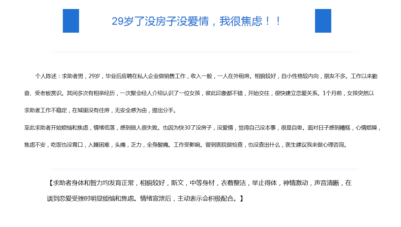 摘要:本報告主要介紹了一例失戀所緻焦慮情緒的心理咨詢案例。失戀情緒問題是青年中非常常見的一種(zhǒng)心理問題。隻要能(néng)擺正對(duì)待失戀的态度,就(jiù)能(néng)消除種(zhǒng)種(zhǒng)不良情緒的困擾。