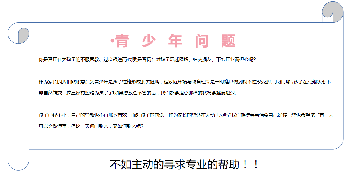 ★兒童心理咨詢、青少年成(chéng)長(cháng)問題、親子關系、家庭教育、行爲問題、學(xué)習問題;